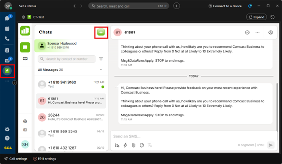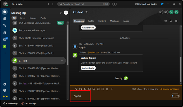 SC4 now offers a communication option for select users that allows sending and receiving text messages directly through the Webex application.