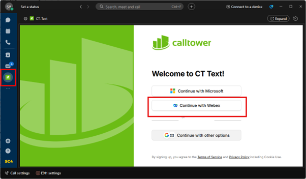 Open the CT-Text app within Webex.